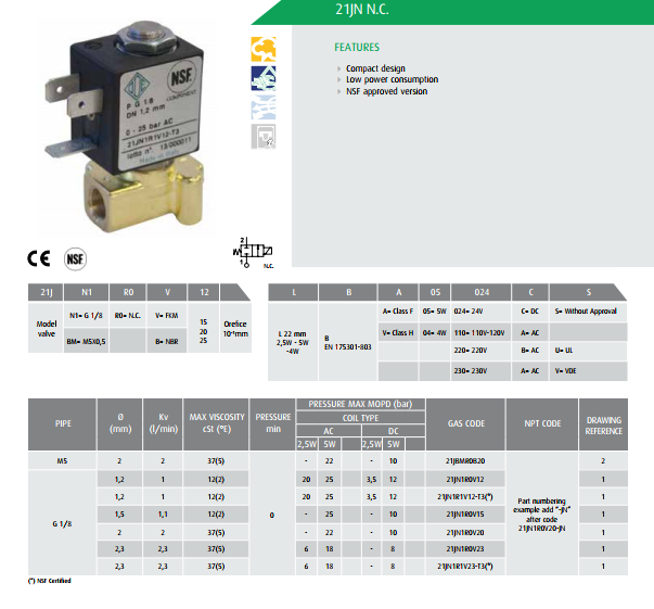 Van điện từ 21JN1ROV12 ~ 21JN1R1V23-T3 ODE