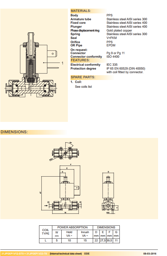 Van điện từ ODE: 31L2F0V15-U
