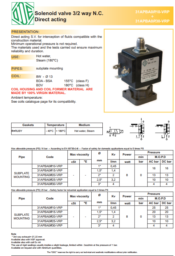 Van điện từ ODE : 21A3ZV15D, 21A3Z20D, 21A3ZV20G, 21A3ZV25D, 21A3ZV25G, 21A3ZV30D, 21A3ZV30G, 21A3ZV45D, 21A3ZV45G, 21A2ZV15D