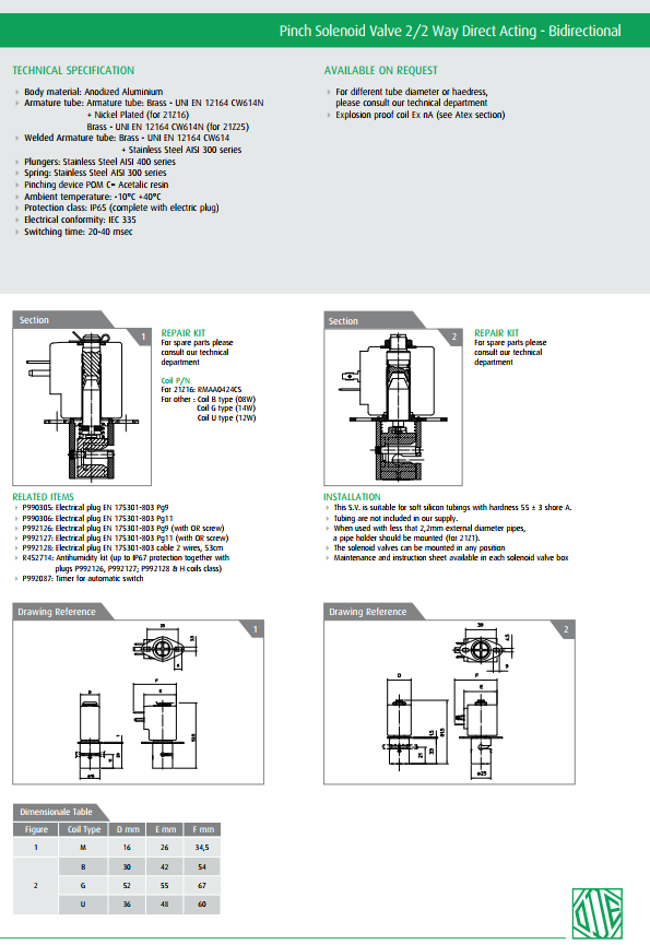 Van điện từ ODE : 21A5ZV45D, 21A5ZV45G, 21A5ZV55D, 21A5ZV55G, 21A8ZV45D, 21A8ZV45G, 21A8ZV55D, 21A8ZV55G
