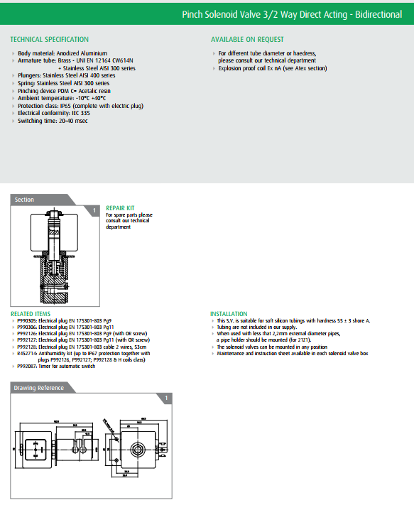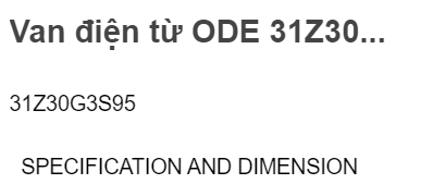 Van điện từ ODE : 21A3ZV15D, 21A3Z20D, 21A3ZV20G, 21A3ZV25D, 21A3ZV25G, 21A3ZV30D, 21A3ZV30G, 21A3ZV45D, 21A3ZV45G, 21A2ZV15D