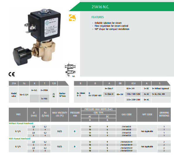 Van điện từ 21A16KE25, 21A16KE25, 21A16KE25-XV , 21A16KE30-XV
