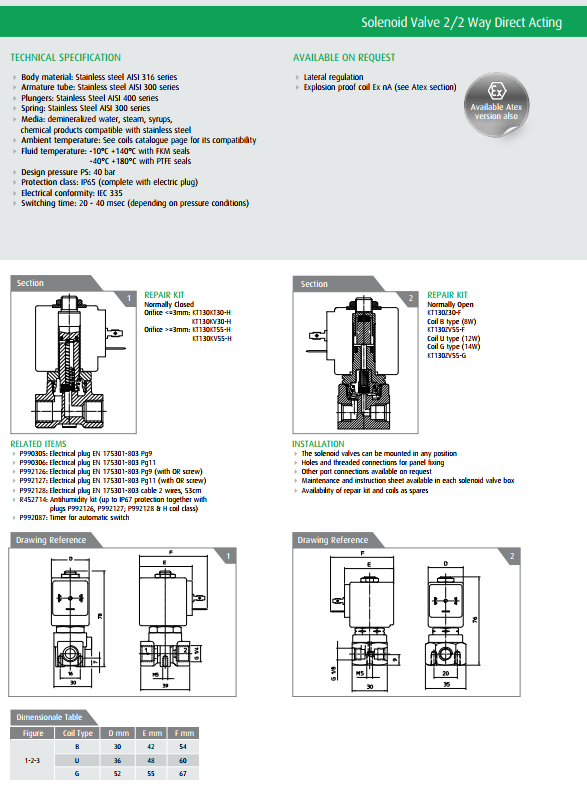 Van điện từ ODE : 21A5ZV45D, 21A5ZV45G, 21A5ZV55D, 21A5ZV55G, 21A8ZV45D, 21A8ZV45G, 21A8ZV55D, 21A8ZV55G