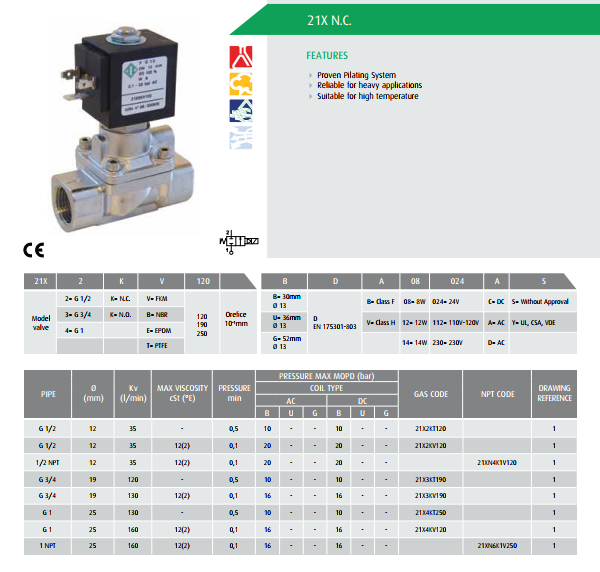 Van điện từ ODE: 21X2KT120 ~ 21XN6K1V250