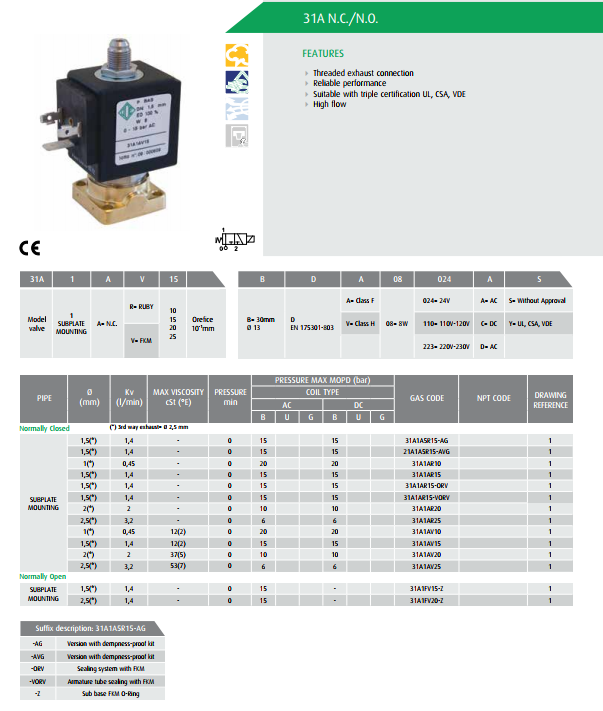 Van điện từ ODE: 31A1A5R15 ~ 31A1FV20-Z