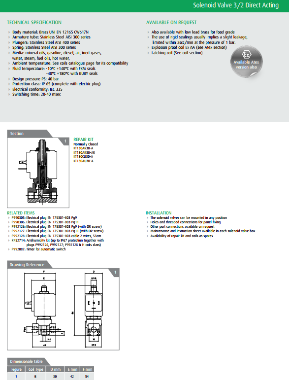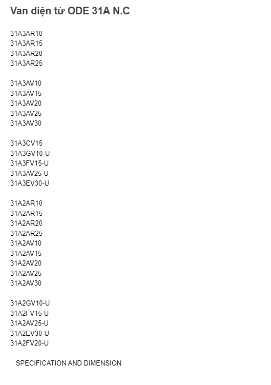 Van điện từ ODE : 21A3ZV15D, 21A3Z20D, 21A3ZV20G, 21A3ZV25D, 21A3ZV25G, 21A3ZV30D, 21A3ZV30G, 21A3ZV45D, 21A3ZV45G, 21A2ZV15D