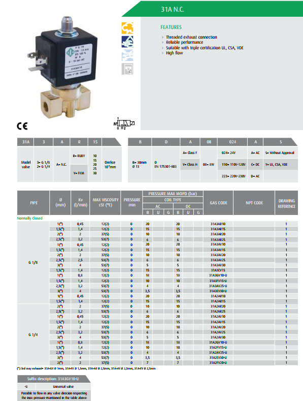 Van điện từ ODE : 21A5ZV45D, 21A5ZV45G, 21A5ZV55D, 21A5ZV55G, 21A8ZV45D, 21A8ZV45G, 21A8ZV55D, 21A8ZV55G