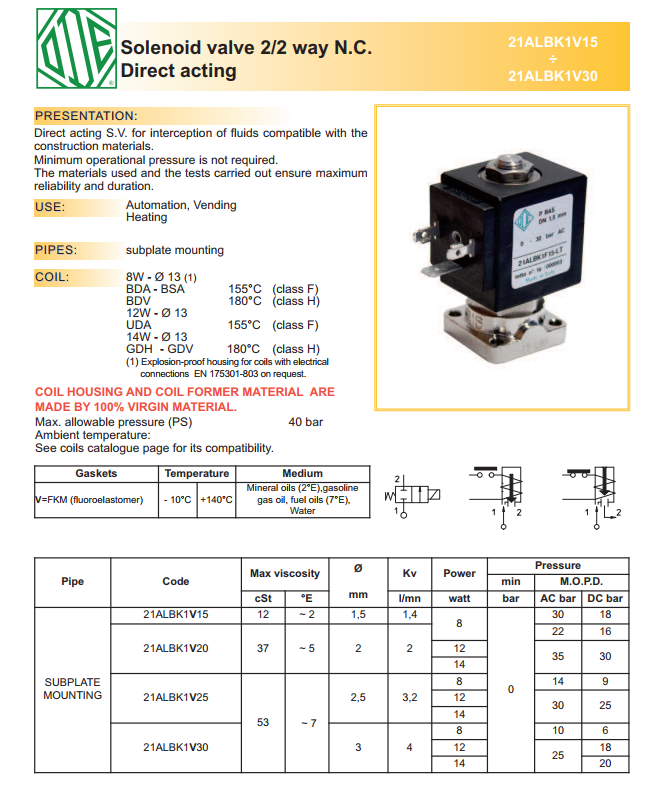 VAN ĐIỆN TỪ ODE: 21ALBK1V15 ~ 21ALBK1V30
