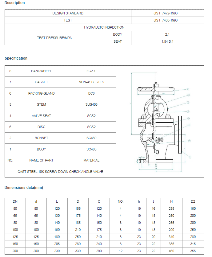 JIS F 7472 Cast Steel 10K screw-down angle valve