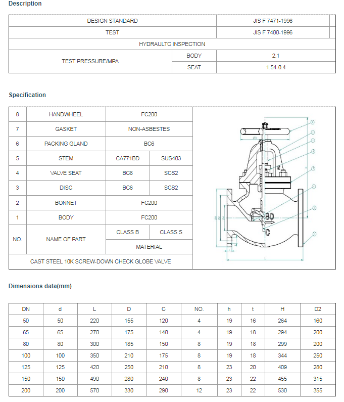 JIS F 7471 Cast Steel 10K screw-down check globe valve