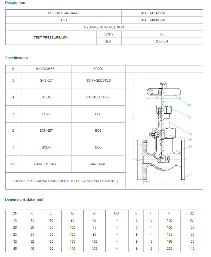 JIS F 7301 Bronze 5K globe valve
