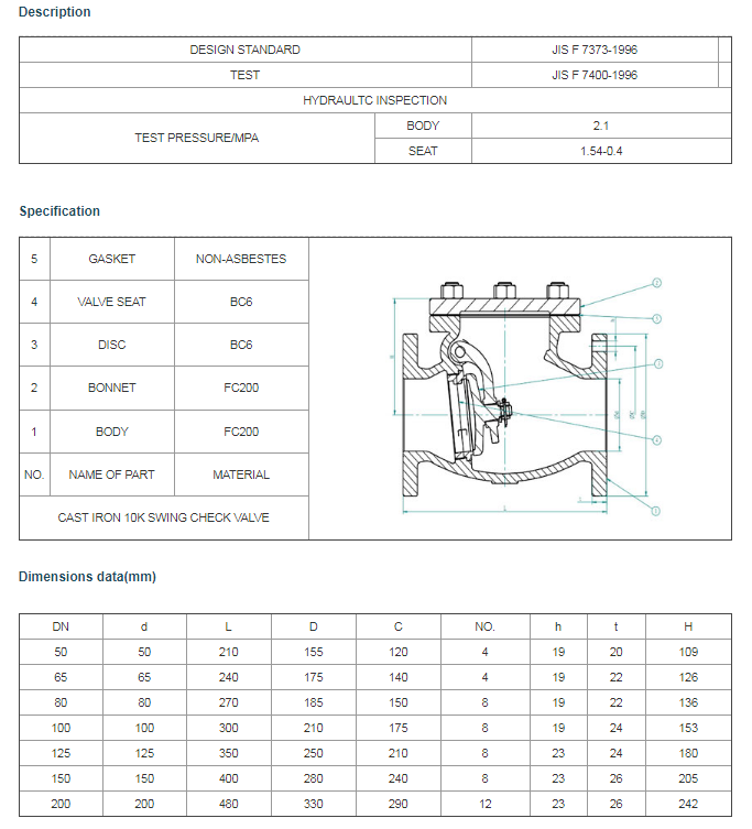 JIS F 7373 Cast rion 10K swing check valve