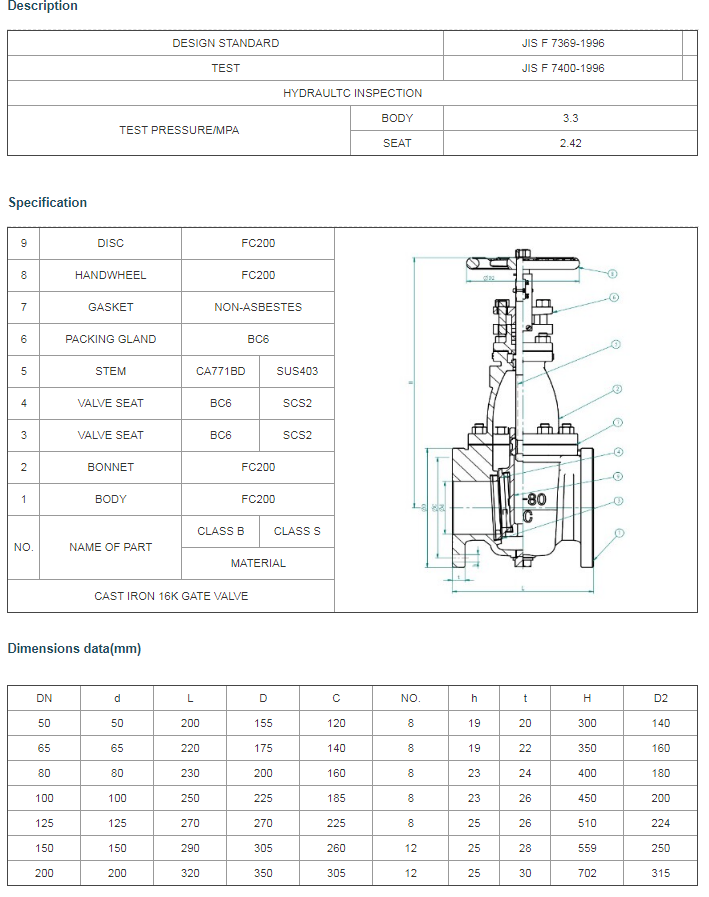 JIS F 7369 Cast iron 16K gate valve