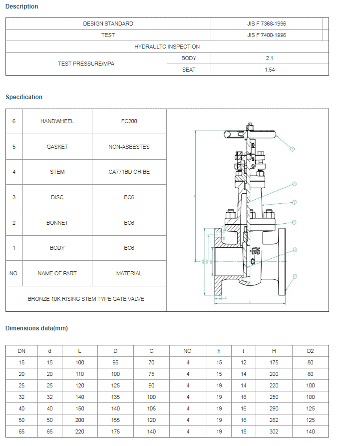 Class 150 bronze 5K 10K gate valves openclose indicator