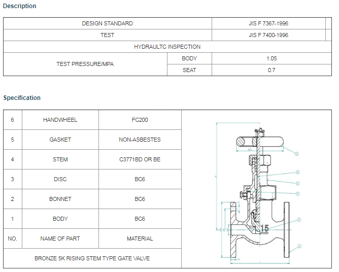 JIS F 7367 Bronze 5K rising stem type gate valve