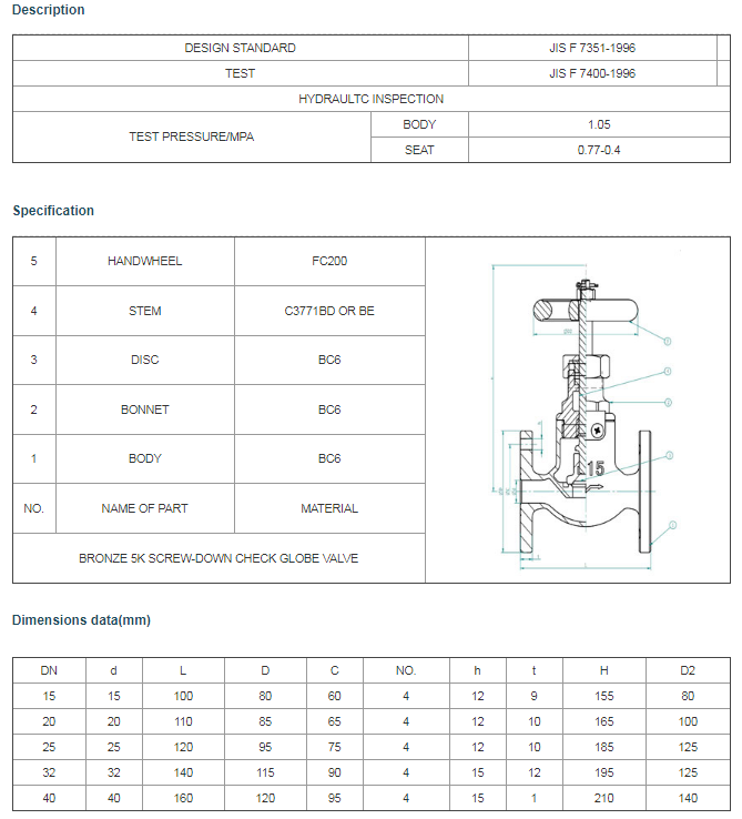JIS F 7301 Bronze 5K globe valve