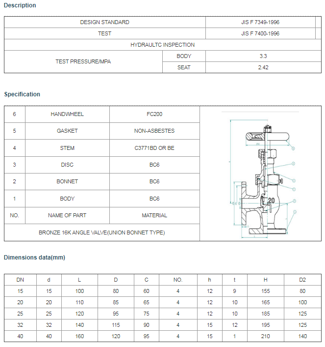 JIS F 7349 Bronze 16K angle valves(union bonnet type)