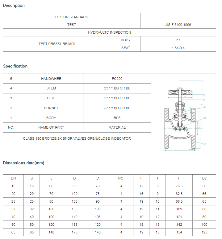 Class 150 bronze 5K 10K gate valves openclose indicator