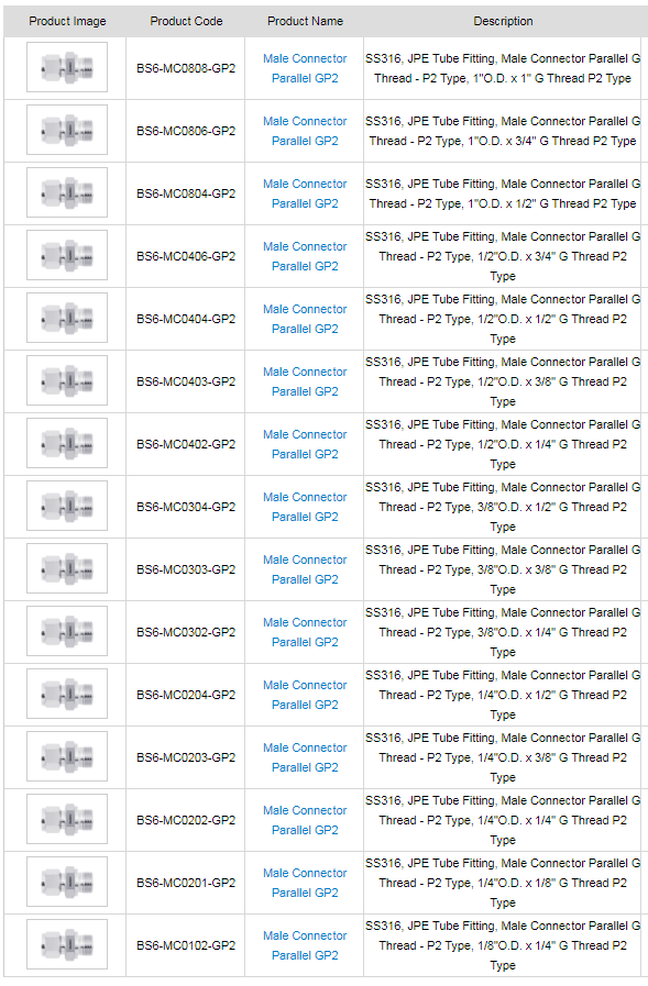 Tube Fitting - Male Connector Parallel GP2 Yean Hern