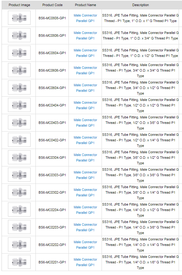 Tube Fitting - Male Connector Parallel GP1 Yean Hern