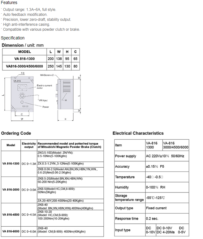 Powder brake / clutch driver VA-816 Controller - Niika
