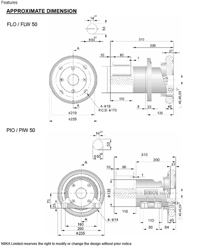 Pillow block and Flange chucks PIO/W FLO/W50- Niika