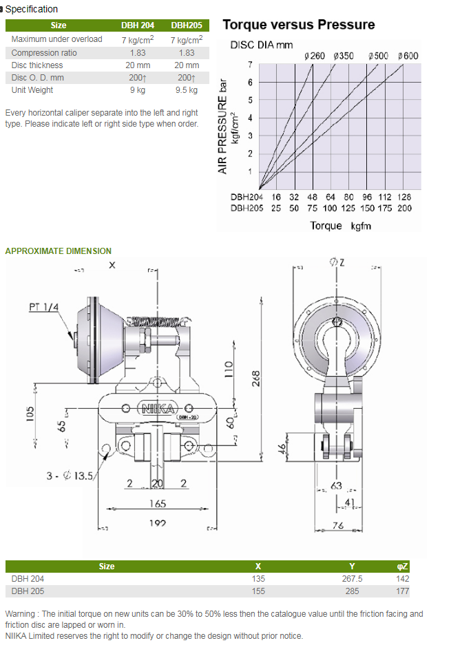 Phanh Khí Nén NIIKA DBR252 , DBR254 , DBR256