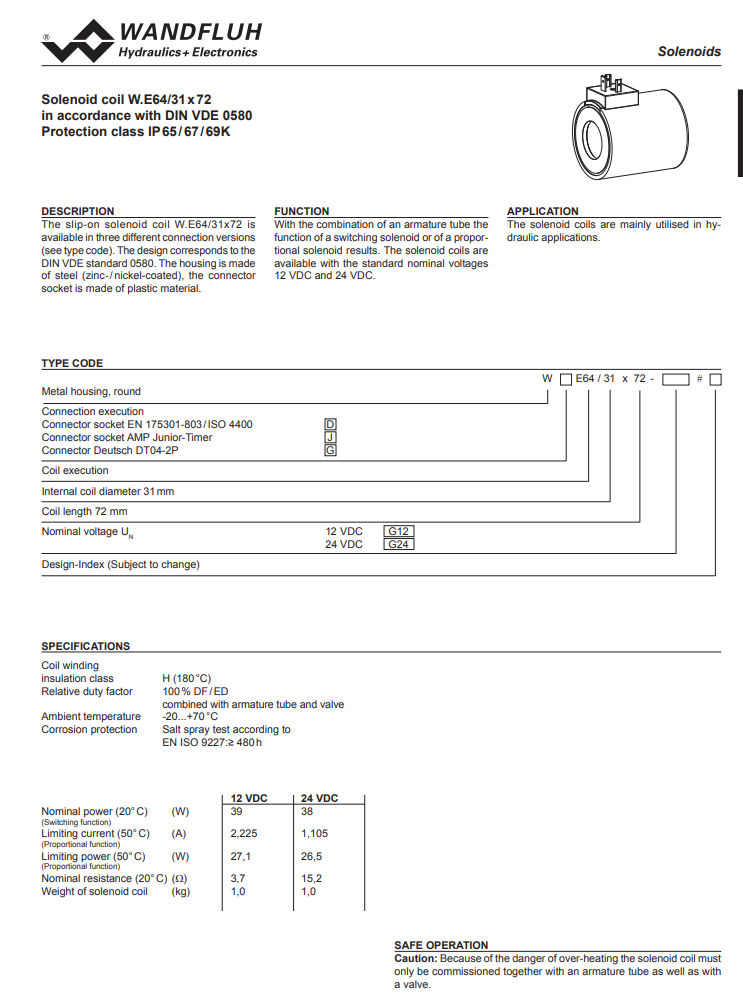 Solenoid coil steel execution W_E64_31x72 - Wandfluh