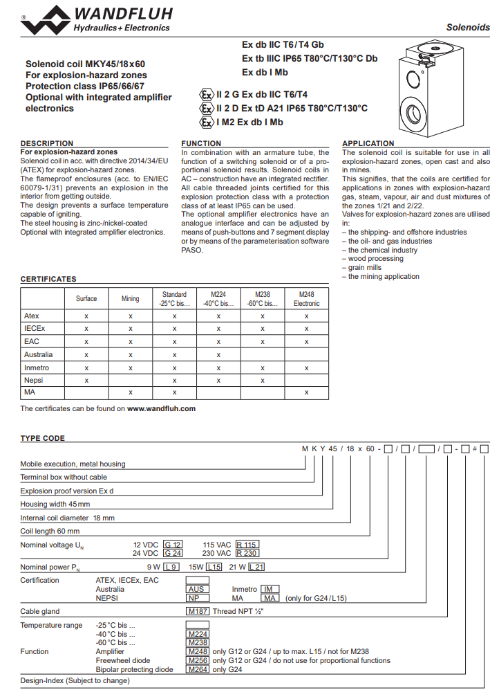 Solenoid coil Ex d II C-type MKY45_18x60- Wandfluh