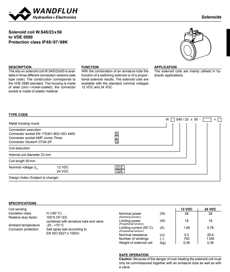 Solenoid coil steel execution W_S45_23x50 - Wandfluh