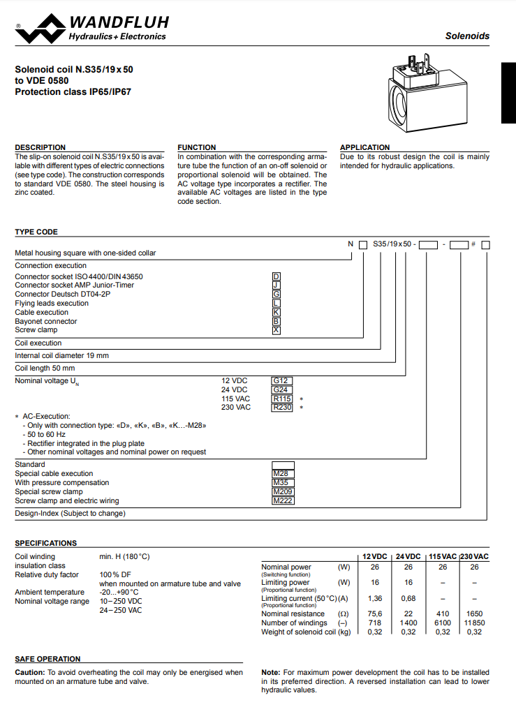 Solenoid coil steel execution N_S35_19x50- Wandfluh