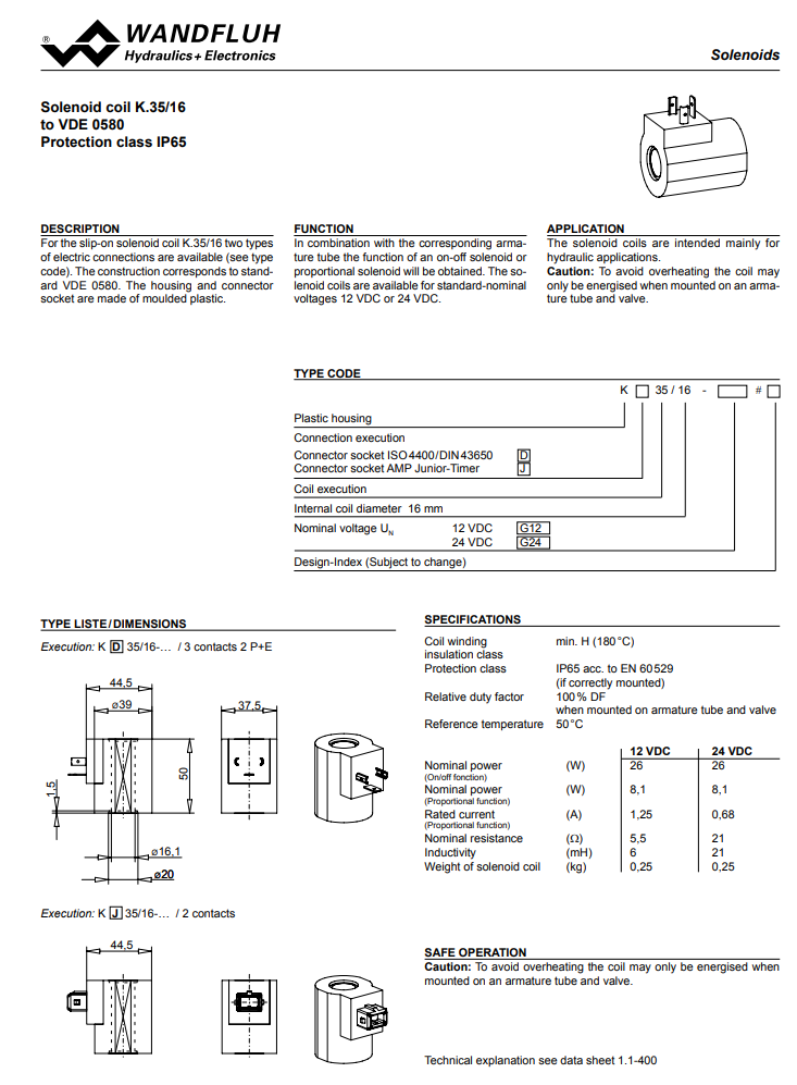 Solenoid coil plastic execution K_35_16-Wandfluh