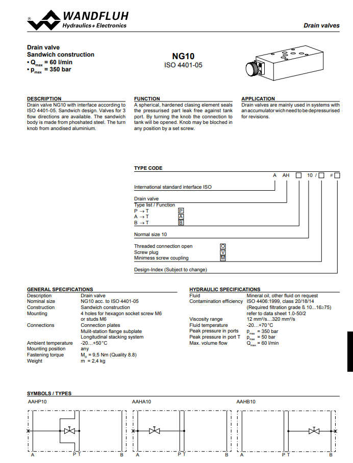 Drain valve sandwich construction AAH_10- Wandfluh