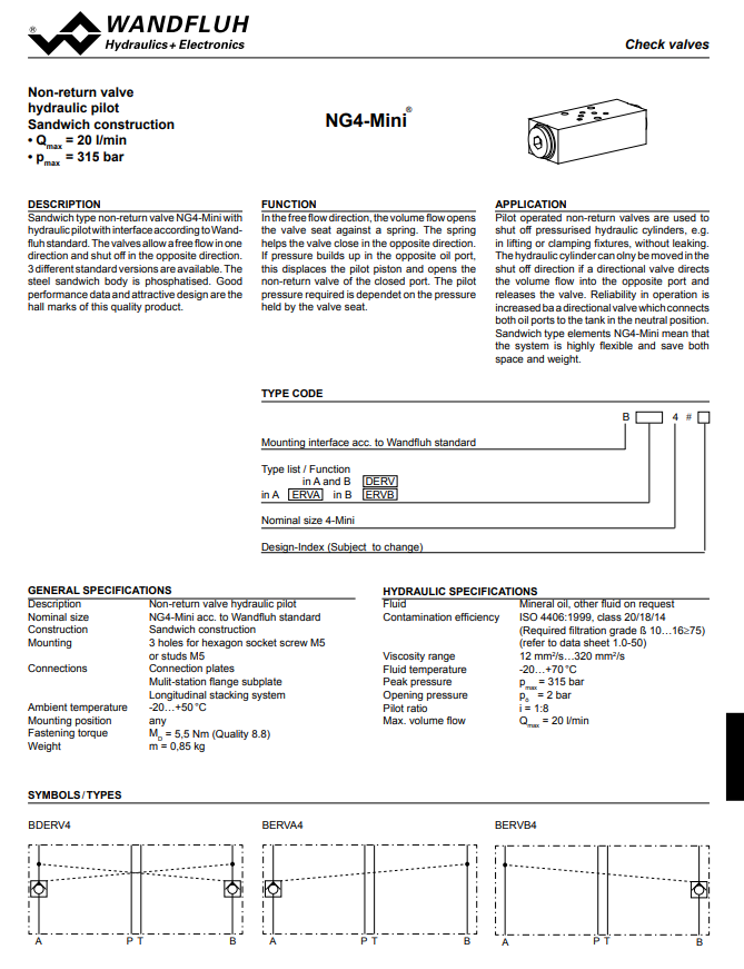 Non-return valve pilot operated sandwich construction B_ERV_4- Wandfluh