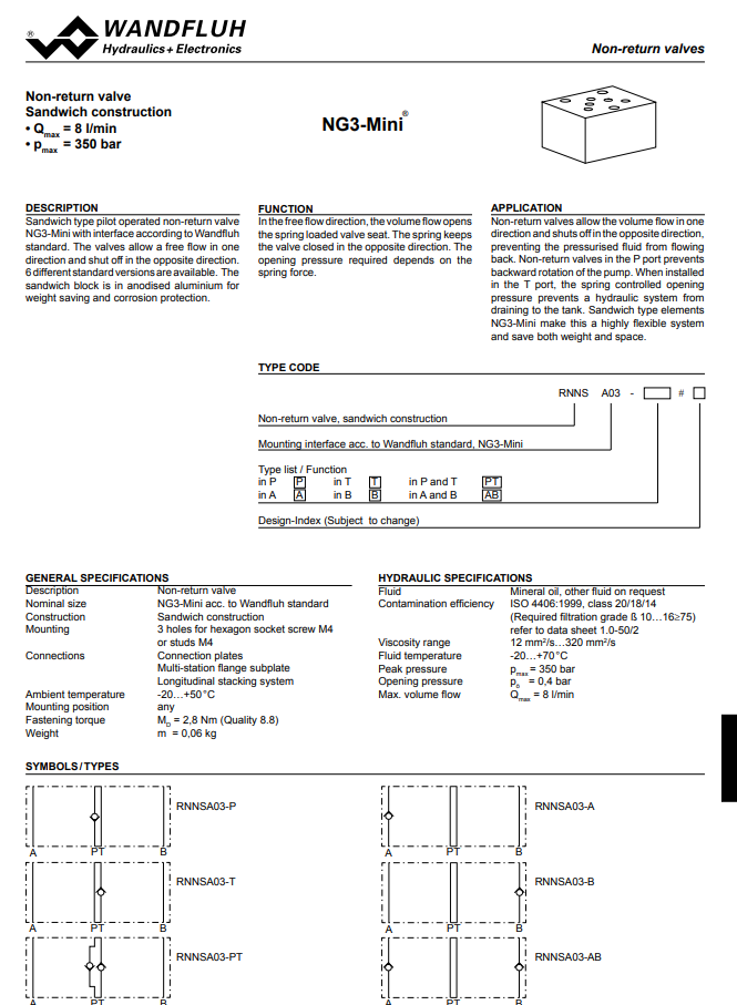 Non-return valve sandwich construction RNNSA03-Wandfluh