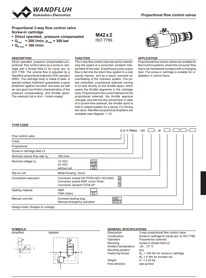 Prop. 3-way flow control cartridge (slip-on-coil) QDPPM42_160_W-Wandfluh