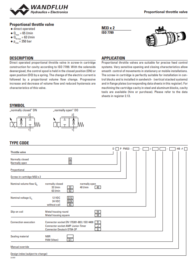 Proportional throttle cartridge D_PPM33- Wandfluh