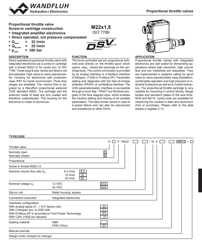 Proportional throttle cartridge D_PPM22_ME- Wandfluh