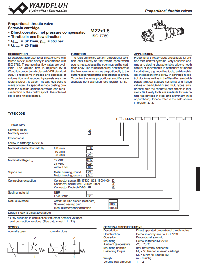 Proportional throttle cartridge D_PPM22- Wandfluh
