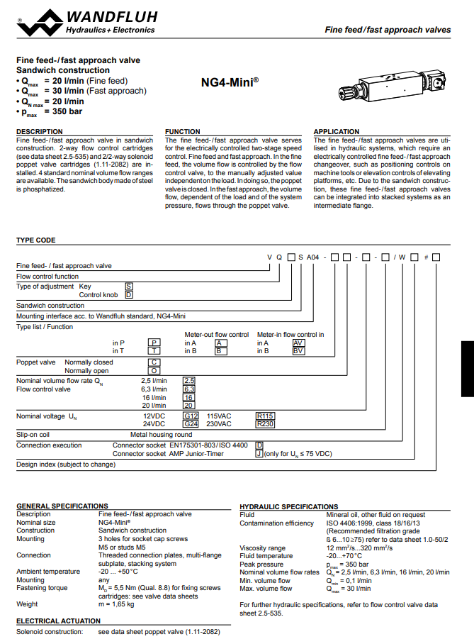 Fast approach / fine feed valve sandwich construction VQ_SA04-Wandfluh