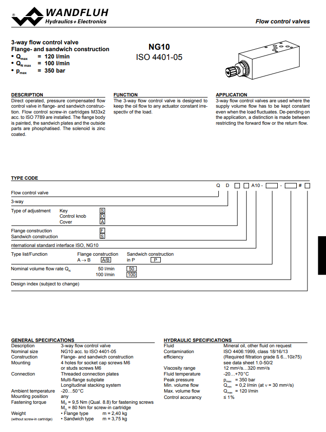 3-way flow control valve flange and sandwich construction QD_A10-Wandfluh