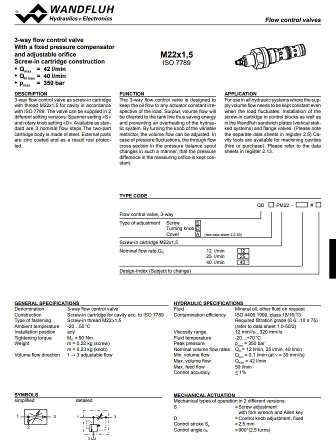 3-way flow control cartridge QD_PM22-Wandfluh