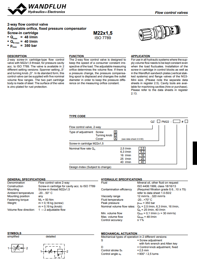 2-way flow control cartridge QZ_PM22-Wandfluh