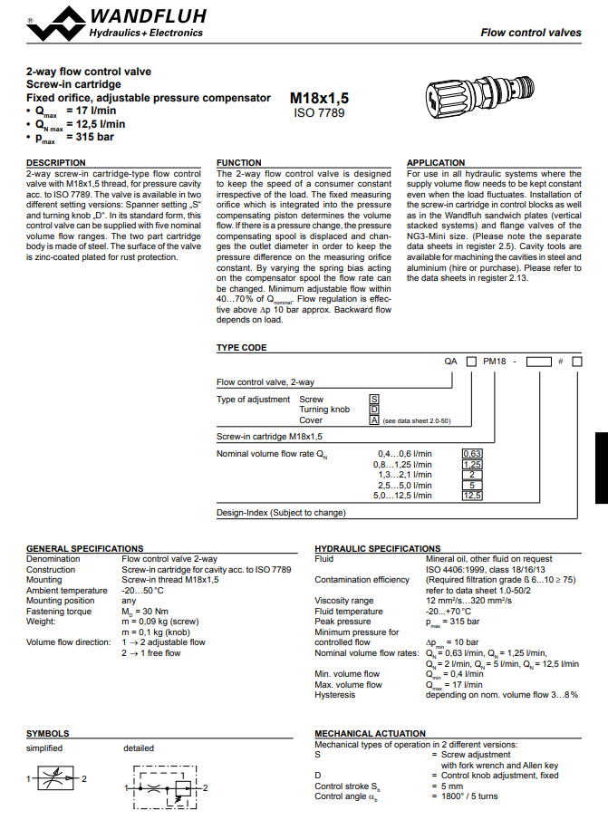 2-way flow control cartridge QA_PM18-Wandfluh