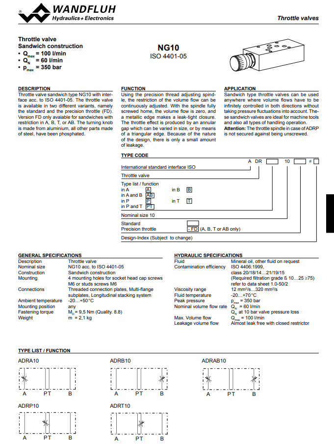 Throttle valve sandwich construction ADR_10-Wandfluh