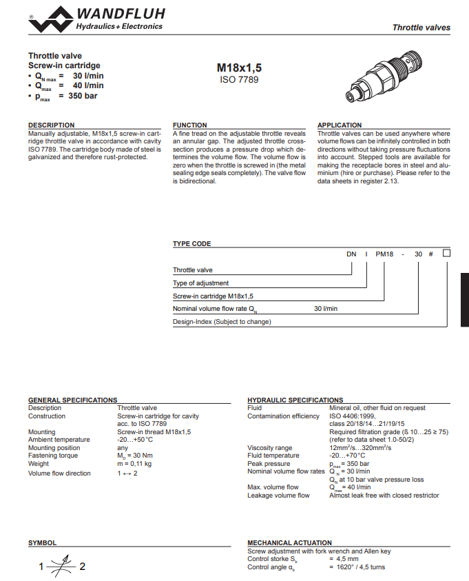 Throttle cartridge DNIPM18-Wandfluh