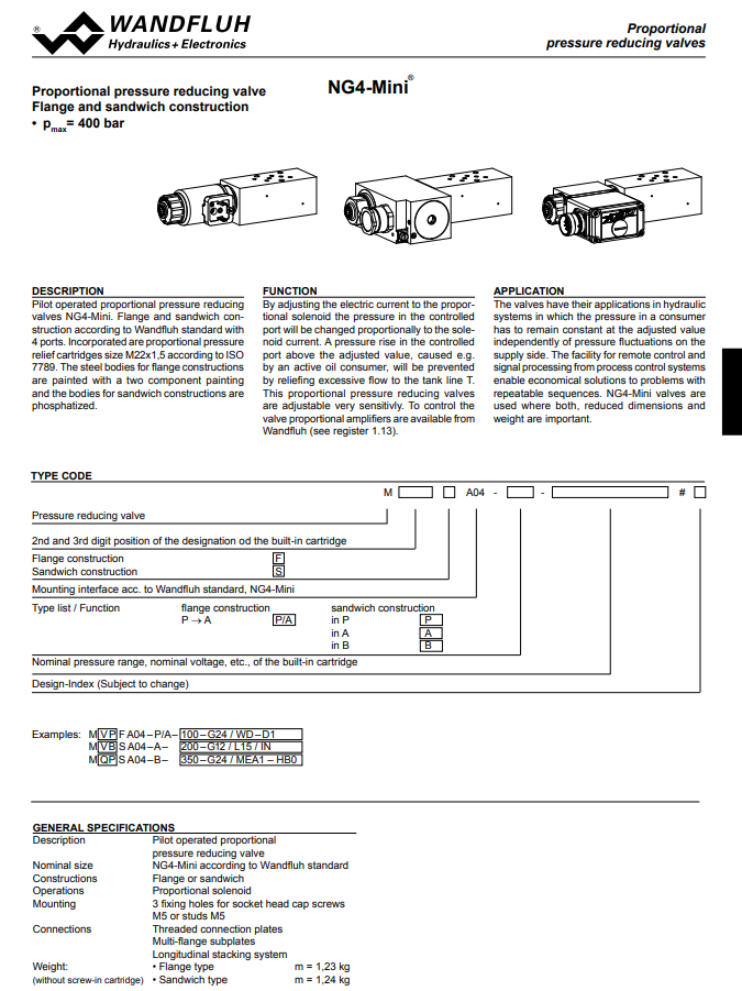 Proportional pressure reducing valve flange and sandwich construction M_A04-Wandfluh
