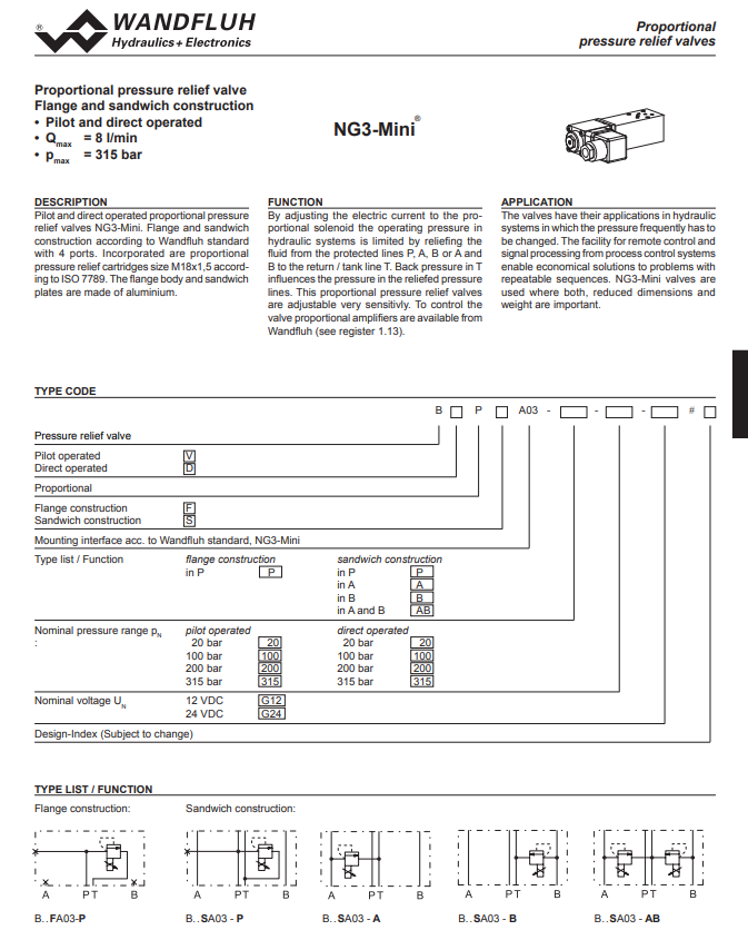 Proportional pressure relief valve flange and sandwich construction B_P_A03-Wandfluh