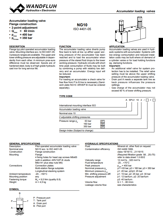 Accumulator unloading valve with 2 adjustable shifting points ASPLV102-Wandfluh