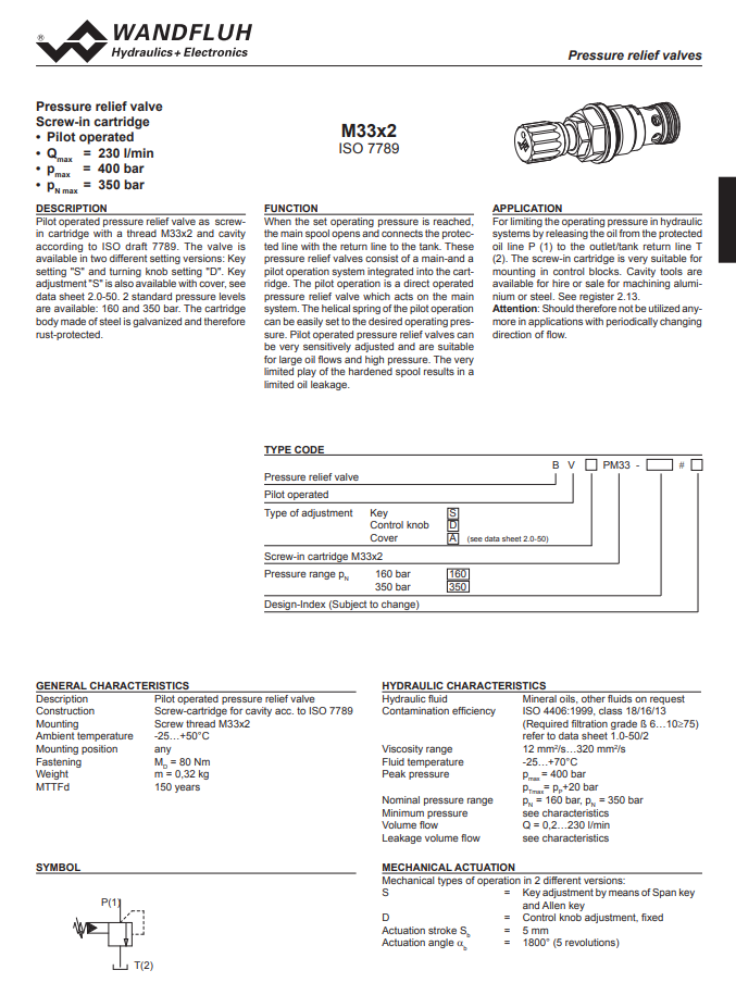 Pressure relief cartridge pilot operated BV_PM33-Wandlfuh